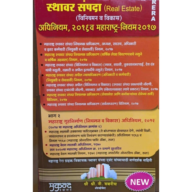 ![Mukund Prakashan's Real Estate (Regulation & Development) Act, 2016 with Rules 2017 [RERA Act] Marathi By S. N. Sabnis | Sthawar Sampada Mukund Prakashan's Real Estate (Regulation & Development) Act, 2016 with Rules 2017 [RERA Act] Marathi By S. N. Sabnis | Sthawar Sampada](http://law-all.com/image/cache/catalog/data/Book Images/Mukund Prakashan/2021/MP0114-500x500.jpg)
